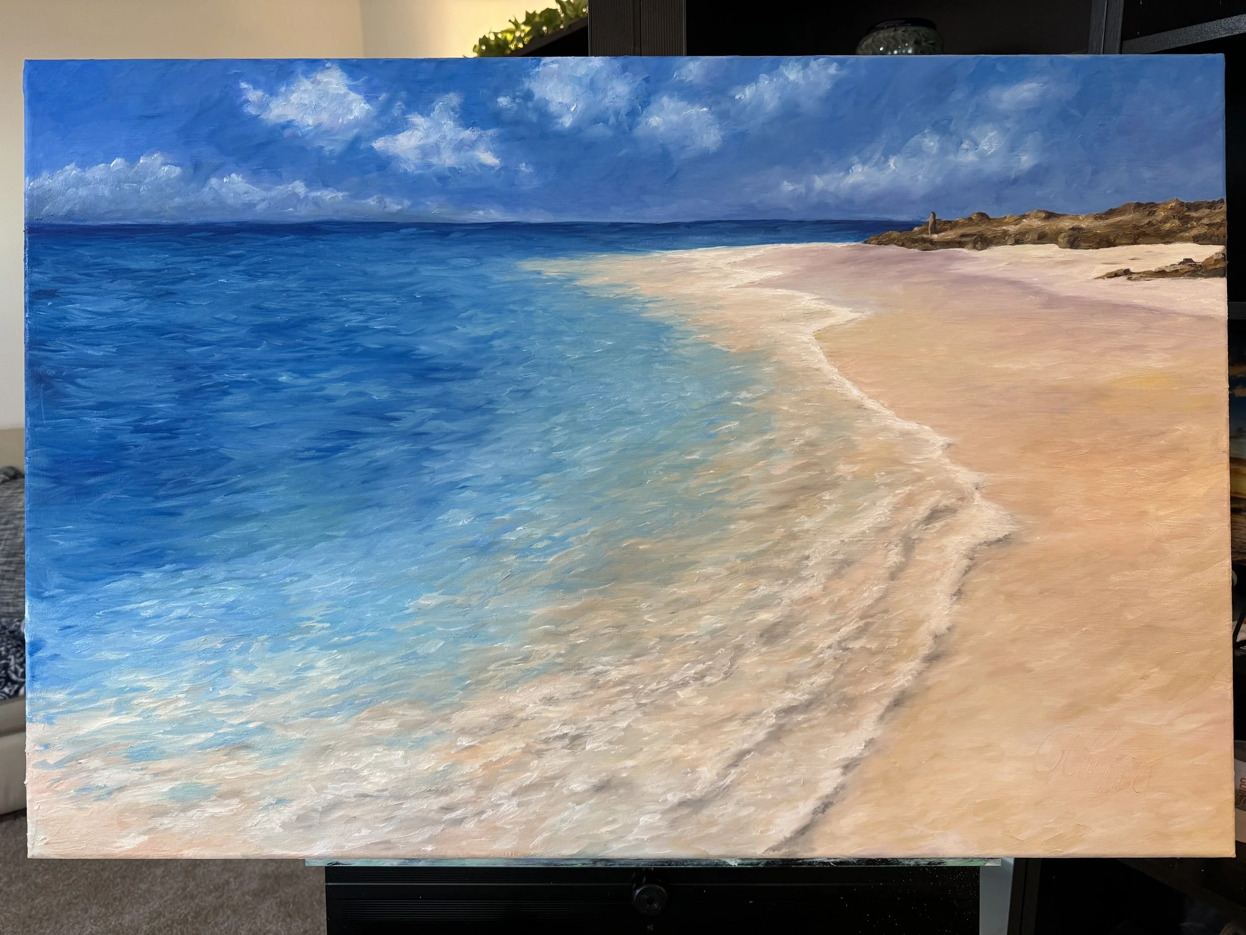 The finished painting, Soft Shores, 24x36 oil on stretched canvas. Soon to hit my shop online.