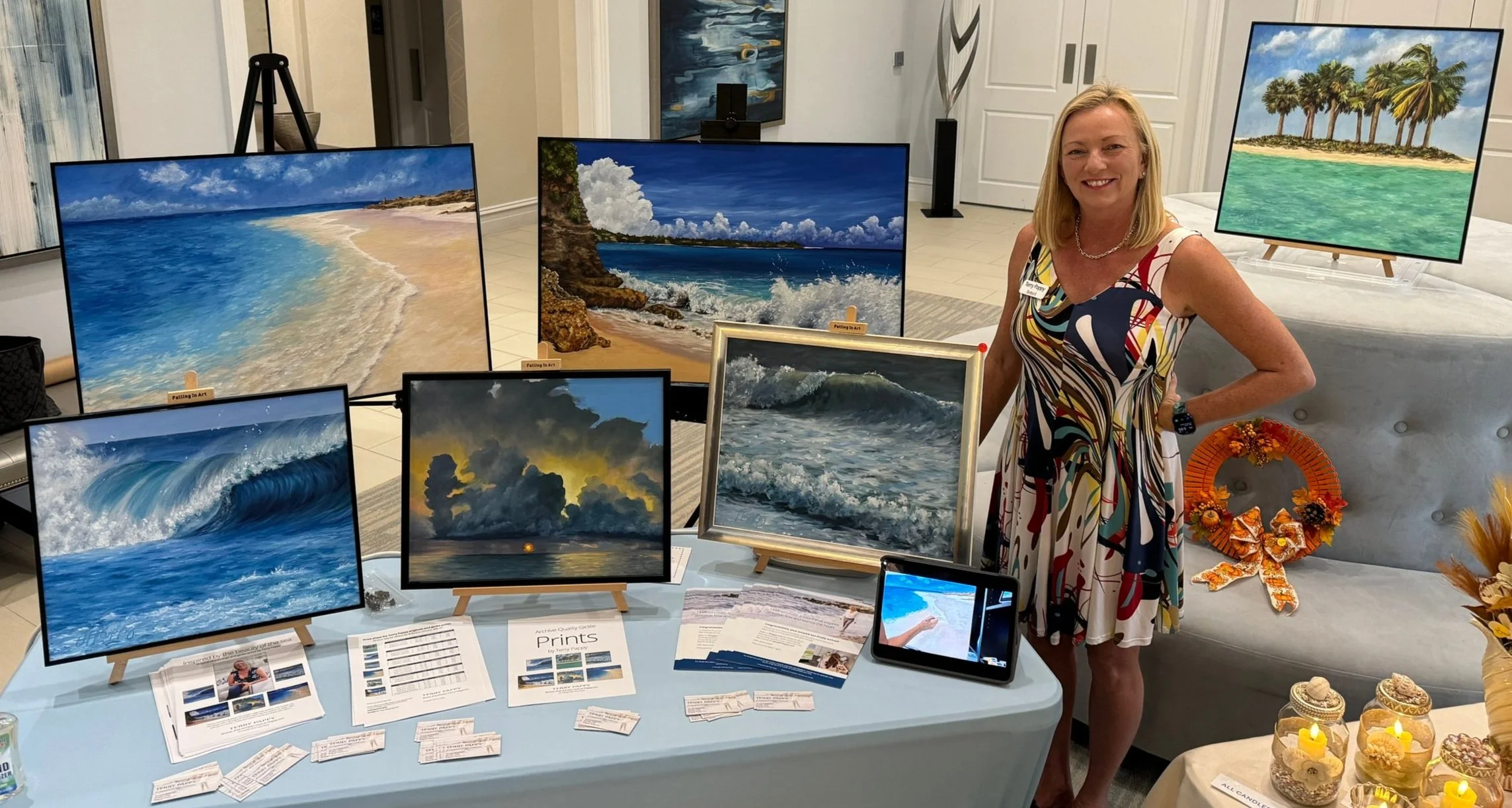 The photo is from my first art show in 30 years. It was an art walk at my neighborhood clubhouse featuring the artists in my community. Although I swore I’d never do an art show again, here I am showcasing my oil paintings to neighbors who chose to attend.