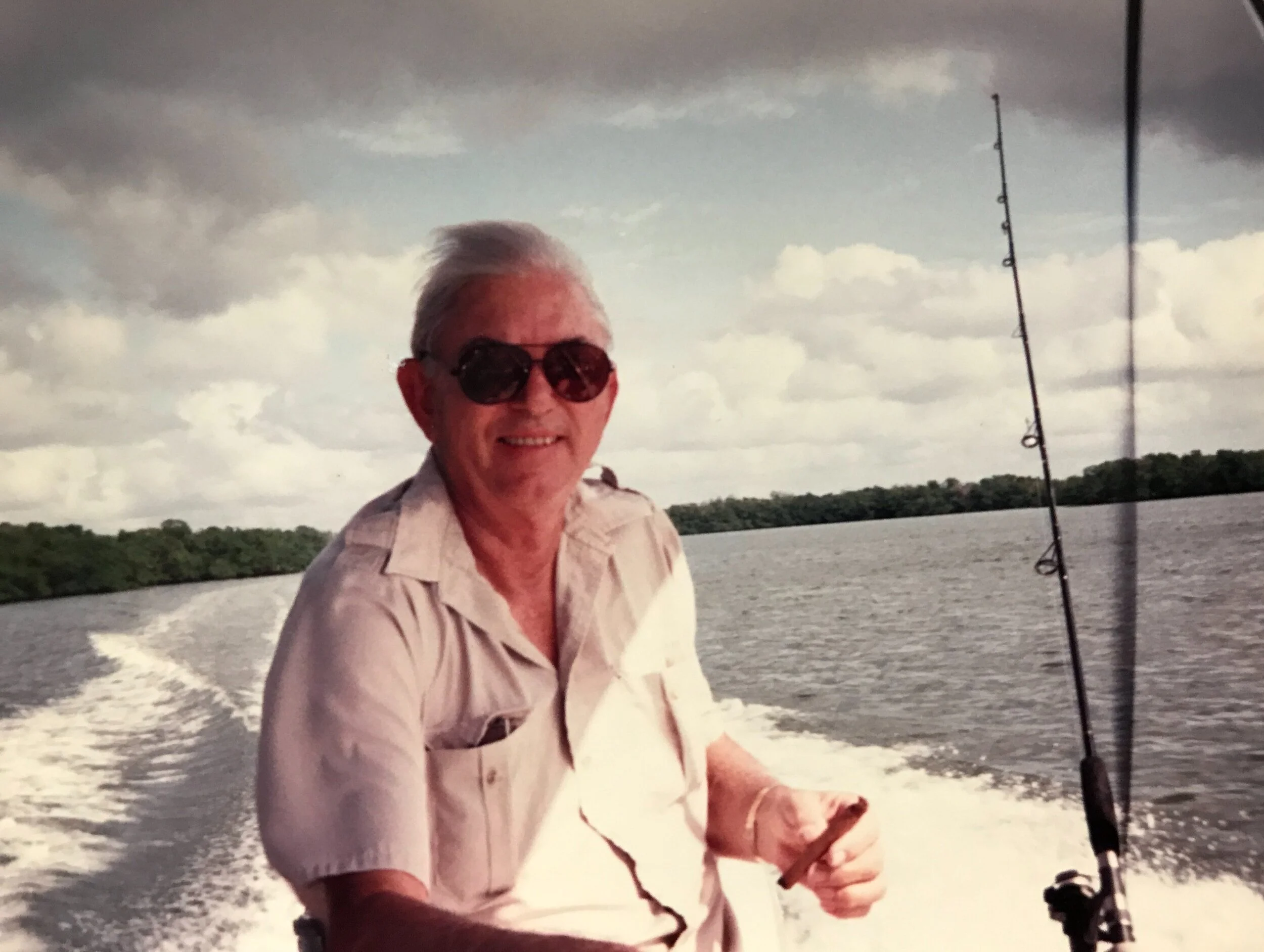 Cigar hanging out of the left side of his mouth, rod gently in his right hand, institutional beige fishing shirt and pants but I don’t remember his shoes. He was an expert caster. With a flick of his wrist he could put a pinched and hook-pierced shrimp in between the legs of a mangrove with precision. I could never master the way he did it, but I tried.